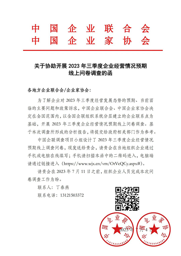 关于协助开展2023年三季度企业经营情况预期线上问卷调查的函